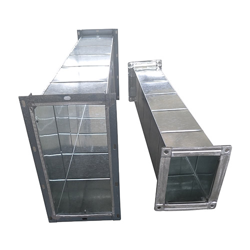 共板法蘭主要由角碼、法蘭夾,及與風(fēng)管一體相連的法蘭連接,這種形式風(fēng)管雖然造價較低(減少了角鋼用量,減少了制作角鋼法蘭的人工用量),但是實際應(yīng)用起來不如角鋼法蘭牢固,且必須通過機床進行加工,手工制作幾乎不能實現(xiàn)它的制作,通常只應(yīng)用于新風(fēng)系統(tǒng),空調(diào)系統(tǒng)等,排煙系統(tǒng)還是經(jīng)常用角鋼法蘭連接的風(fēng)管。但是人防工程是不允許用共板法蘭連接。