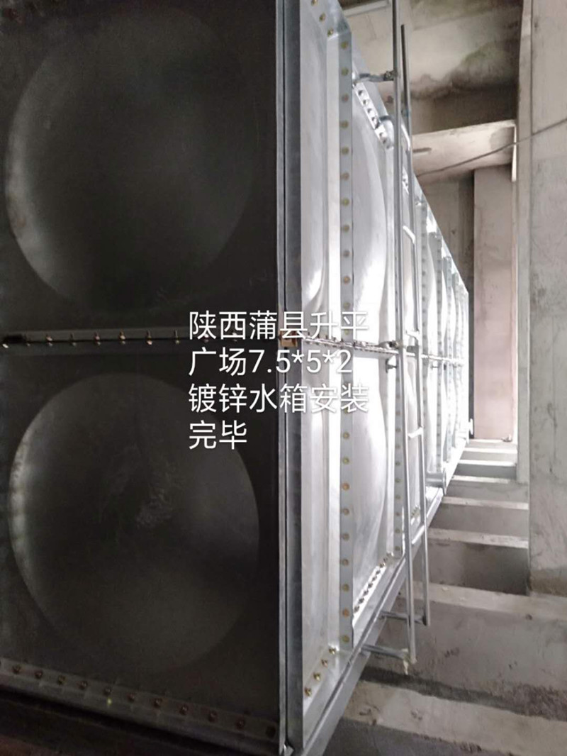 騰翔鍍鋅水箱主要采用優(yōu)質(zhì)的Q235鋼板沖壓而成,形成1000×1000、1000×500、500×500等標準板塊后經(jīng)熱浸鍍鋅處理后形成鍍鋅水箱板。優(yōu)點是:全螺栓連接,現(xiàn)場進行組裝,組裝快捷方便,組裝時采用密封條密封,不易出現(xiàn)漏水及密封不嚴現(xiàn)象。水箱體內(nèi)特殊性拉桿結(jié)構,使力學性能更合理,高度可達到5米。鍍鋅水箱對安裝現(xiàn)場無特殊要求,無需吊裝設備,容積可滿足用戶要求。